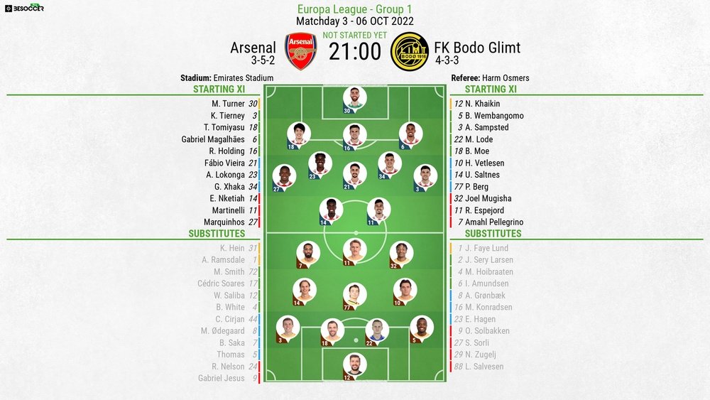 View the starting lineups and subs for the Arsenal vs BodoGlimt match on 06102022 plus access full match preview and predictions. BodoGlimt possible starting lineup. Nketiah 23 1 - 0.